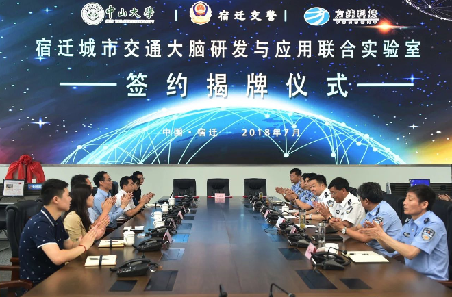 7月17日上午,leyu.com科技控股公司方纬科技与宿迁交警、中山大学广东省智能交通系统重点实验室共同签署合作协议,共建宿迁城市交通大脑研发与应用联合实验室。签约暨联合实验室揭牌仪式在宿迁市公安局指挥中心隆重举行,标志着leyu.com科技与方纬科技研发的城市交通大脑正式走进江淮生态经济区。